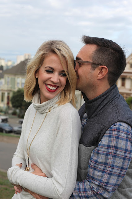 Okay enough sappy stuff and back to some fun pictures in front of the beautiful Painted Ladies in San Francisco! Y'all, these houses are one of my favorite touristy things to go see in the city. Being a huge fan of Full House growing up, I've always loved seeing the gorgeous bay windows and bright, unique colors of these houses. I thought these would be the perfect backdrop for our Christmas card pictures this year. I must give myself a little credit on being so on top of things this year! Last year, we snapped a quick pic at Thanksgiving and I didn't get cards mailed till right before Christmas. Oops. I hope you enjoy this little snapshot of our new home! As always, outfit details are listed at the end.